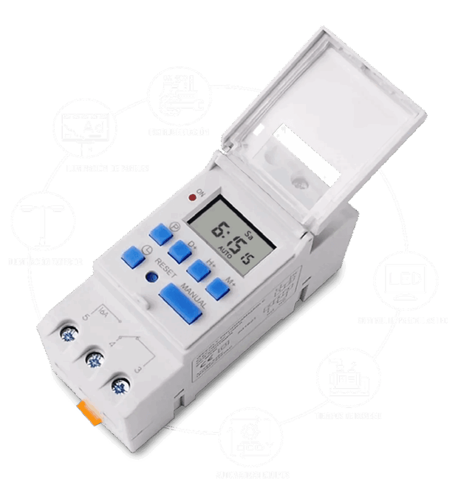 Con el Interruptor Horario Digital AHC15D, puedes automatizar el encendido y apagado de tus dispositivos eléctricos, reduciendo el consumo innecesario de energía y ahorrando tiempo.