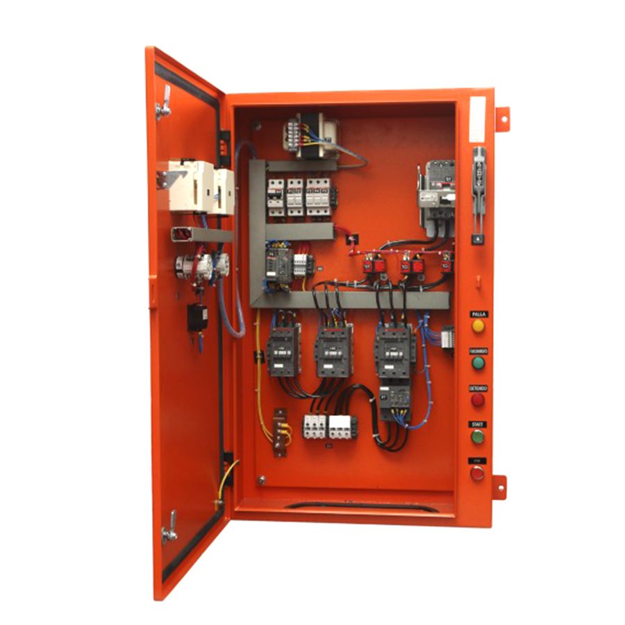 Utilizado para el arranque de motores eléctricos de gran potencia, este tablero reduce la corriente de arranque mediante una conexión inicial en estrella y, después de un tiempo, cambia a una conexión en triángulo para el funcionamiento normal del motor.