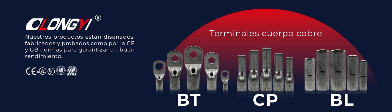 Longyi fabricante internacional de terminales y conectores de cobre prensados en frío. Con más de 30 años en la industria, sus productos (codos SC, terminales aislados, bornes, lugs, etc.) son usados en tableros eléctricos, transformadores, instalaciones industriales, telecomunicaciones, energías renovables y más. Exporta a más de 100 países, respaldada por certificaciones internacionales (ISO 9001, CE, UL) y un fuerte compromiso con la calidad y la innovación.