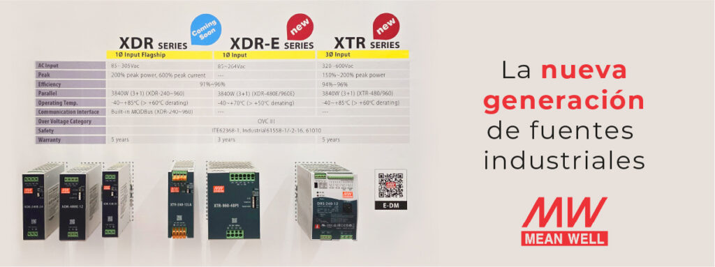 Con opciones de salida en 12 V, 24 V, 36 V y 48 V, y una amplia gama de potencias, esta matriz de productos permite cubrir desde aplicaciones estándar de automatización hasta sistemas industriales de alta demanda. Ya sea que se busque una solución costo-efectiva como la XDR-E, un desempeño superior con la XDR, o máxima potencia trifásica con la XTR, MEAN WELL ofrece la alternativa ideal.