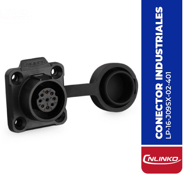 CONECTOR HEMBRA 9 PIN, M16, MONTAJE EN PANEL, CON BRIDA CUADRADO, SERIE LP-16, IP67, CNLINKO