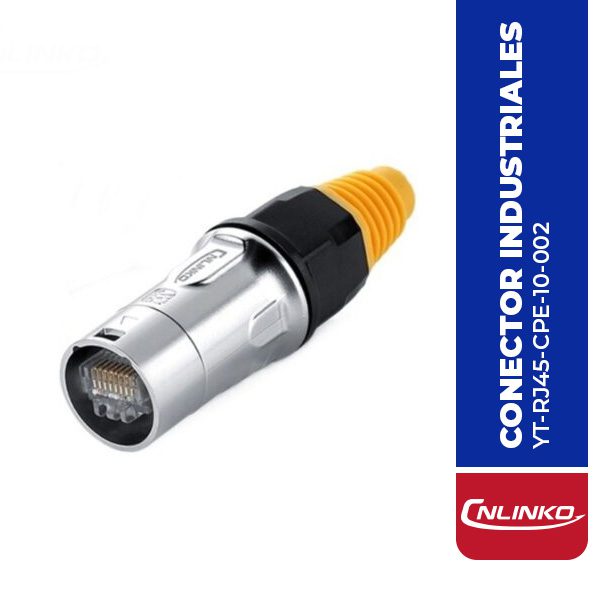 El conector RJ45 macho YT-RJ45-CPE-10-002 de Cnlinko es un conector RJ45 macho para aplicaciones de señal. Admite cable de calibre 26-24 AWG. Tiene capacidad para 1000 V y 1,5 A. Tiene una conexión con cierre a presión y se utiliza para Ethernet industrial en equipos de audio, equipos de escenario, iluminación DMX y otras aplicaciones de red.