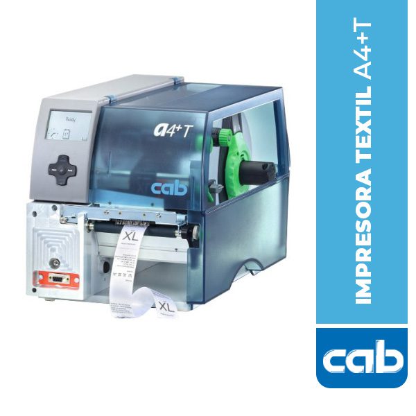 Impresora de transferencia térmica con la que se puede imprimir en materiales textiles enrollados en carretes o bobinas. A continuación del cabezal de impresión se ha colocado un rodillo de tracción adicional especial para cintas de tejido. Este se encarga de separar el ribbon de la cinta de tejido y mejora aún más la precisión de impresión.