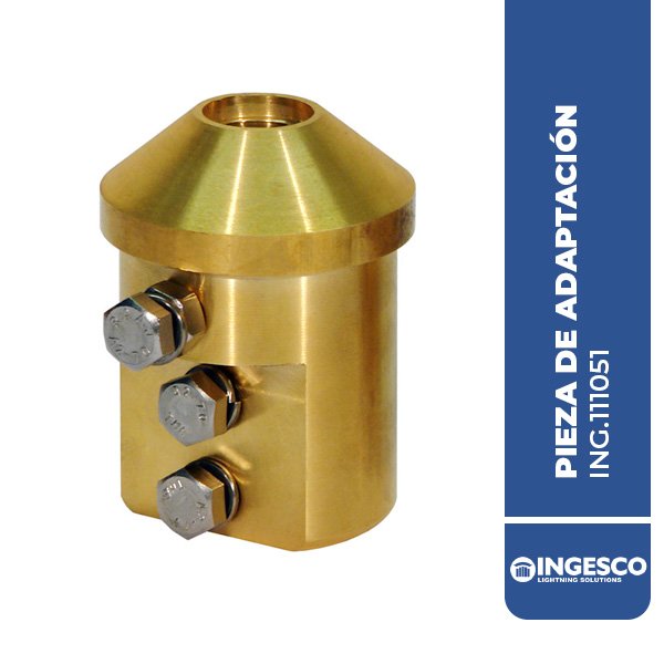 Pieza necesaria para la conexión de puntas captadoras con la red conductora del SPCR (Sistema de protección externa contra el rayo), cuando no se utiliza mástil.